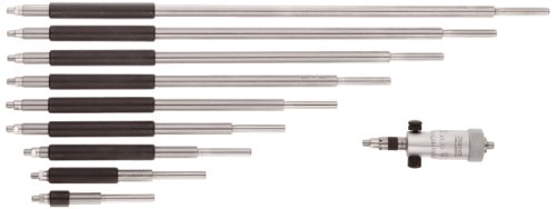 Starrett 124MB Solid-Rod Vernier Inside Micrometers Set, 50-300mm Range, 0.01mm Graduation, +/-0.003" Accuracy, Without Case