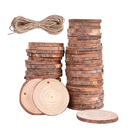 OYOZ Natural Wood Slices Unfinished Predrilled Wood with Hole 50 Pcs 2"-2.5" for Christmas Ornaments DIY Crafts Rustic Wedding Ornaments