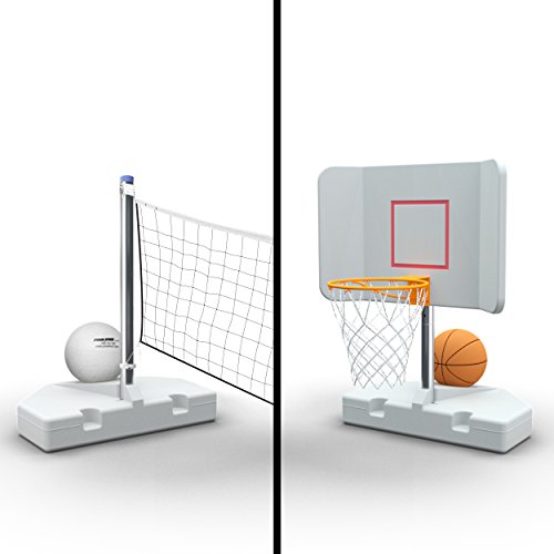 POOL SHOT 2-in-1 Poolside Volleyball/Basketball Combo with Anti-Tumbling Bases and Complete Accessories - Spike N Splash