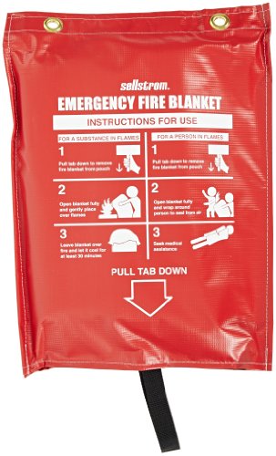 Sellstrom S97450 Fiberglass, Emergency High Temperature Fire Blanket (1,000 Deg F) with Red Vinyl Hanging Pouch, 6' Length x 5' Width, White