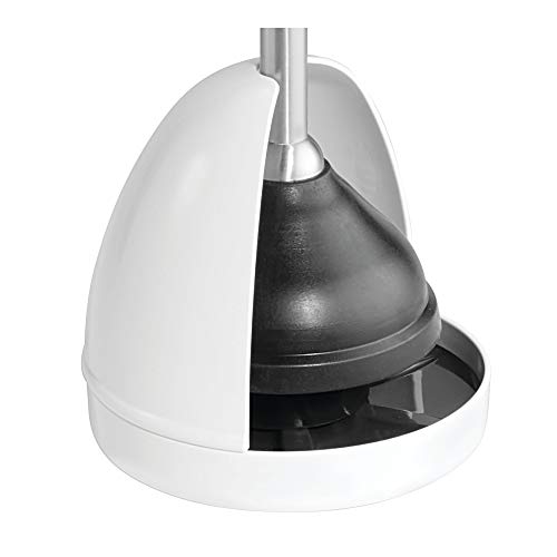 iDesign Una Plastic Toilet Plunger Holder Plunger Stand Cover for Bathroom Storage, Cleaning, White