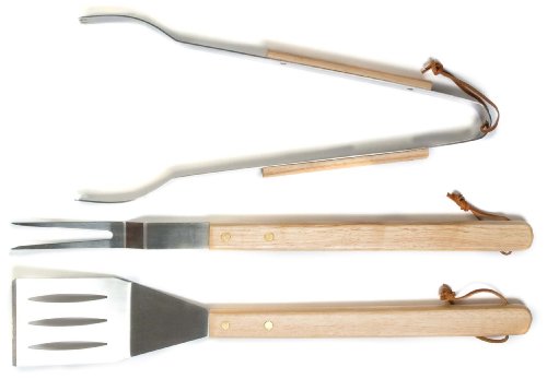 Charcoal Companion Oval Pro Chef Oak Handle Grilling Tongs