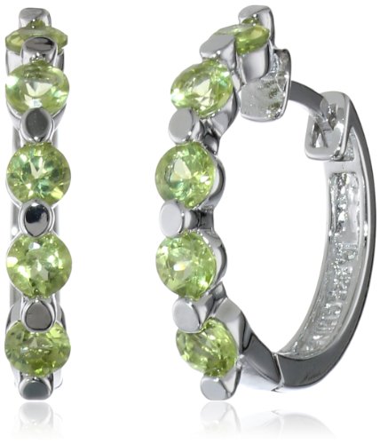 Sterling Silver Peridot Hoop Earrings (0.7" Diameter)