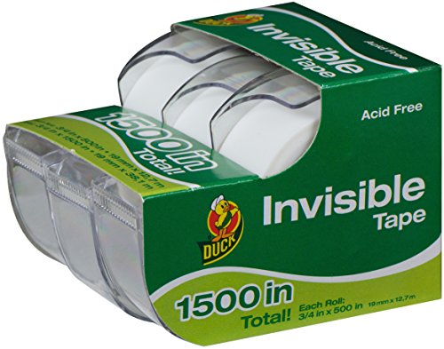 Duck Brand Matte Finish Invisible Tape With Dispenser, 3 Rolls, Each Roll 3/4-Inch x 500 Inches for 1500 Total Inches