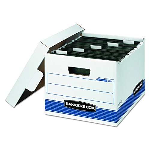 Bankers Box HANG'N'STOR Medium-Duty Storage Boxes, FastFold, Lift-Off Lid, Letter, 4 Pack (00784), Blue;White