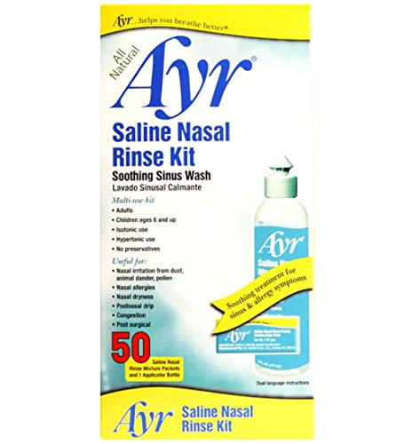 Ayr Saline Nasal Rinse Kit Soothing Sinus Wash, 50 Count Saline Nasal Rinse Mixture Packets Plus Applicator Bottle