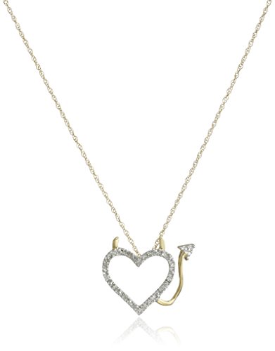 14k Yellow Gold and Diamond Heart Devil Pendant Necklace, 18'