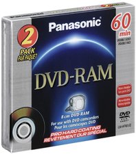 Panasonic Two-Pack of e8cm DVD-RAM Disc with Pro Hard Coating for DVD Camcorders, 2.8GB