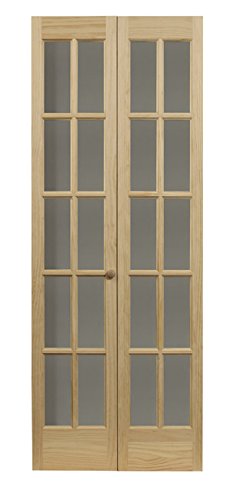 Pinecroft 852726 Traditional Divided Glass French Bifold Intior Wood Door, 30" x 80", Unfinished