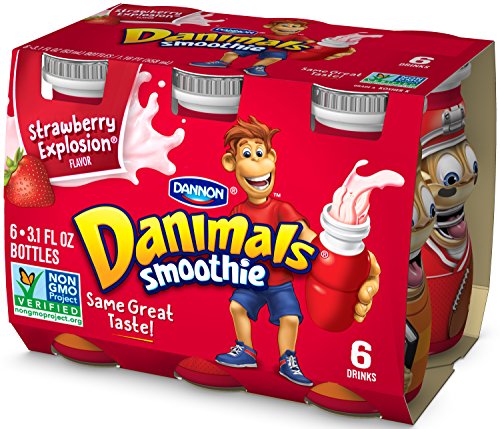 Dannon Danimals Smoothie Lowfat Dairy Drink, Strawberry Explosion, 3.1 Ounce Drinks (Pack of 6)