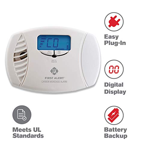 First Alert Dual-Power Carbon Monoxide Detector Alarm | Plug-In with Battery Backup and Digital Display, CO615