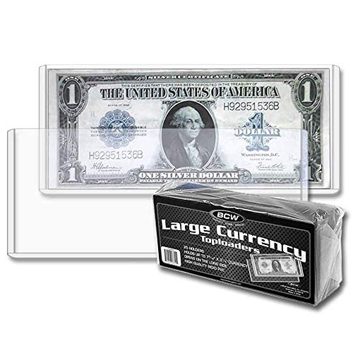 BCW Clear Large Currency Topload Holders, Size 7-9/16" x 3-3/8" (25-Count)