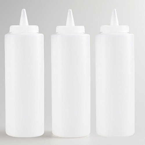 Clear Squeeze Bottle, Condiment Squeeze Bottle, Open-Tip, Screw-On Spout, Polyethylene Durable Plastic, Diner Style, 12 Ounce, Pack of 3
