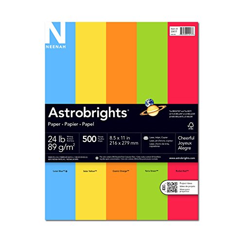 Wausau Astrobrights Heavy Duty Paper, 24 lb, 8.5 x 11 Inches, 5 Color Assortment, 500 Sheets (20017)