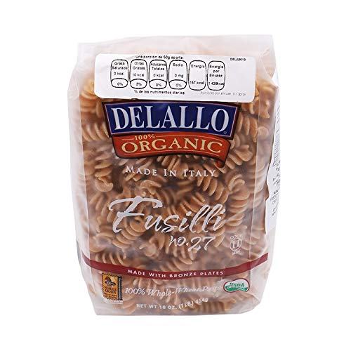 DeLallo Organic Whole Wheat Fusilli #27, 16-Ounce Units (Pack of 16)