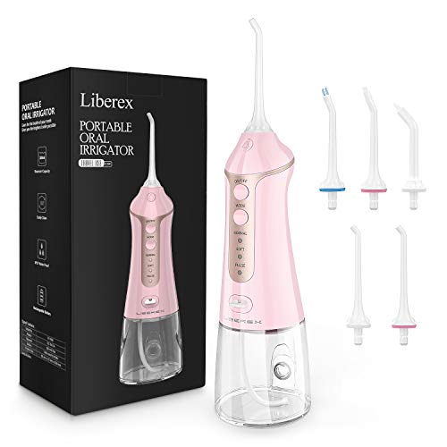 Liberex Cordless Water Flosser - Portable Oral Irrigator with 5 Jet Nozzles, IPX7 Waterproof 300ml Reservoir, 3 Modes Dental Care Teeth Jet for Teeth Braces, USB Rechargeable