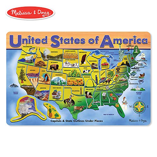 Melissa & Doug Wooden USA Map Puzzle, Wipe-Clean Surface, Teaches Geography & Shapes, 45 Pieces, 18.2″ H × 11.6″ W × 0.45″ L