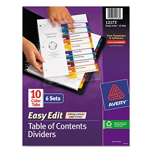 Avery Ready Index Easy Edit Table of Contents Dividers, 10-Tab, 6 Sets (12173)