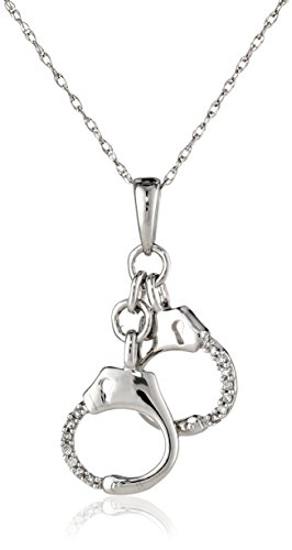 14k White Gold Diamond Handcuffs Pendant Necklace, 18"