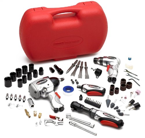 Coleman Powermate 024-0178CT 74 pc. Cool Tool Air Tool Kit features 1/2" Impact, 3/8" Ratchet, Air Hammer, 1/4" Die Grinder
