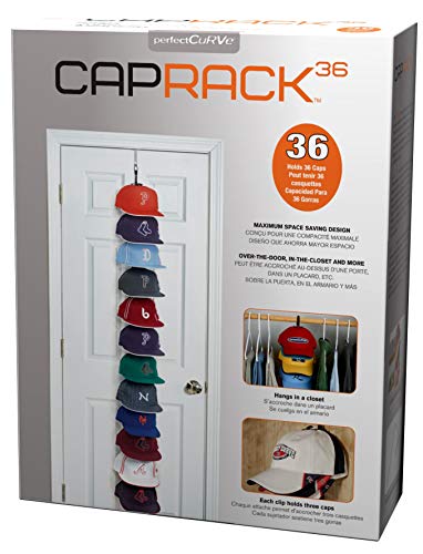 Perfect Curve Cap Rack System - Baseball Cap Organizer (Holds 36 Caps, Black)