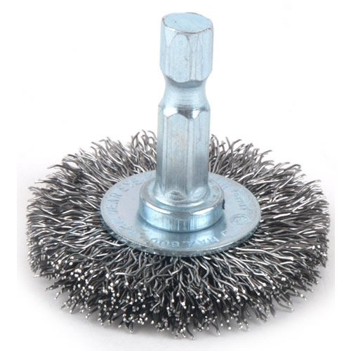 Forney 72725 Wire Wheel Brush, Coarse Crimped with 1/4-Inch Hex Shank, 1-1/2-Inch-by-.012-Inch