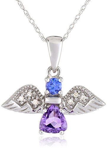 10k White Gold Amethyst and Tanzanite Diamond Accent Angel Pendant, 18"
