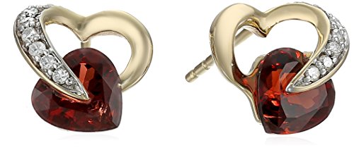 10k Yellow Gold Garnet and Diamond Accent Heart (1/12 cttw, I-J Color, I2-I3 Clarity), Earrings