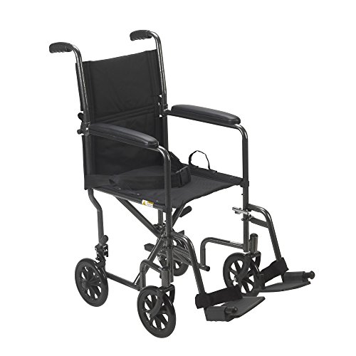 Drive Medical Lightweight Steel Transport Wheelchair, Fixed Full Arms, 19" Seat, Silver