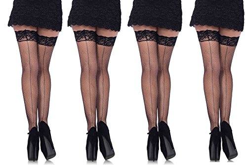 Leg Avenue Women's Plus Size Fishnet Thigh High Stockings with Back Seam and Silicone Lace Top, White, Plus Size