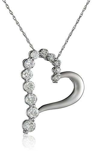 10k White Gold Diamond Journey Heart-Shaped Pendant (1 cttw, H-I Color, I2-I3 Clarity)