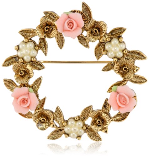 1928 Jewelry Porcelain Rose Floral Wreath Brooch