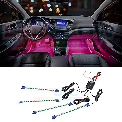 LEDGlow 4pc Pink LED Interior Footwell Underdash Neon Lighting Kit for Cars & Trucks - 7 Unique Patterns - Music Mode - 8 Brightness Levels - Auto Illumination Bypass Mode - Universal Fitment