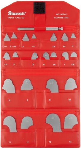Starrett S167MCZ Combined 167MA And 167MB Radius Gauges Inch Set Without Holder, Satin Finish, 1-15mm Range, 0.5mm And 1mm Increments, 21 Gauges