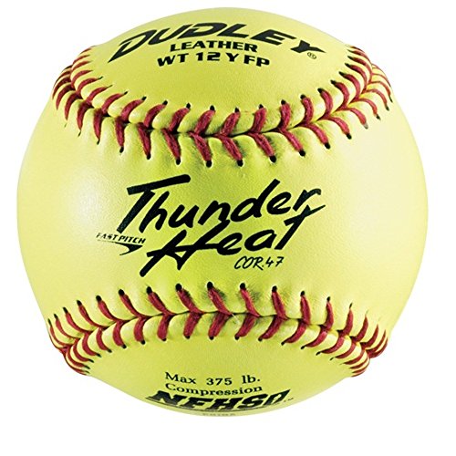 Dudley NFHS Thunder Heat Leather 12-Inch Yellow Fast Pitch Softball, .47/375-Pounds, Red Stitch(Pack of 12)