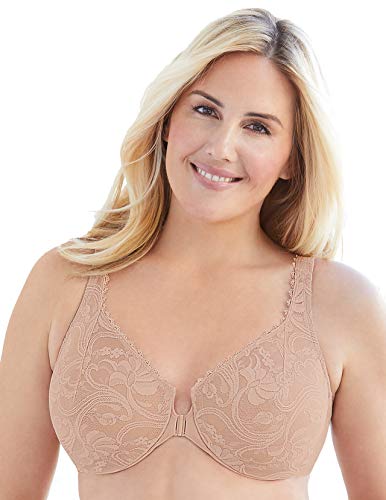 Glamorise Women's Front Close Stretch Lace Wonderwire Bra, Cafe, 42B