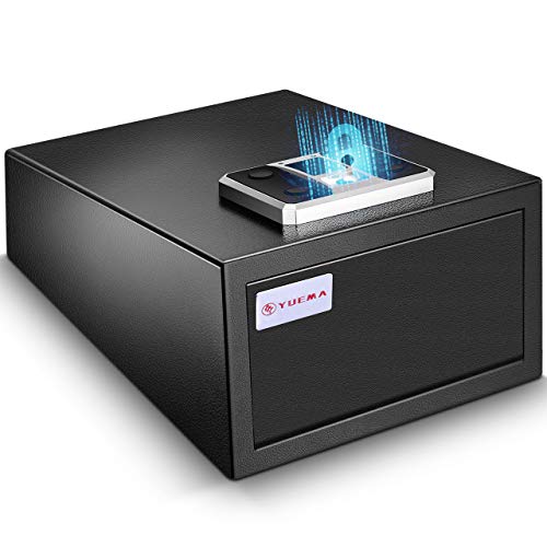 YUEMA 75.521 Electronic Handgun Auto-Open Lid & Wall Mount Bracket, Easily Access Digital Keypad, Portable Gun Safe for Pistols, Cash, Jewelry, Heavy Duty in Home,Office, Hotel Use, 4-1/2", White