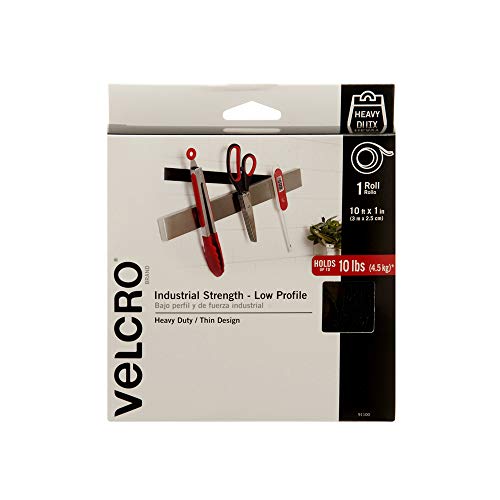 VELCRO Brand Industrial Fasteners Low Profile Thin Design | Professional Grade Heavy Duty Strength Holds up to 10 lbs on Smooth Surfaces | Indoor Outdoor Use, 10ft x 1in, Tape