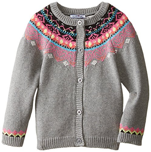 Hartstrings Girls' Little Fair Isle Cotton Cardigan Sweater, Light Grey Heather 5/6