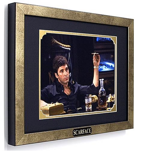 Scarface - Al Pacino as Tony Montana with Cigar. Framed Photo in the Custom Made Modern Scratched Gold Wood Frame (15.5 x 12.5)