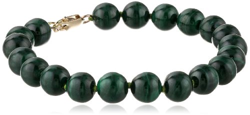 14k Yellow Gold 8mm Malachite Bead Bracelet, 7.25"