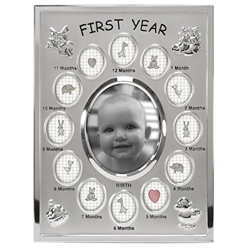 Malden International Designs Baby's First Year Collage Picture Frame, 13 Option, 1-3.5x4, 12-1x1, Silver
