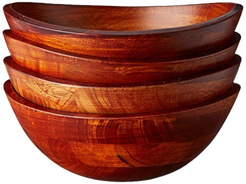 Lipper International 293-4 Cherry Finished Wavy Rim Serving Bowls for Fruits or Salads, Matte, Small, 7.5" x 7.25" x 3", Set of 4 Bowls
