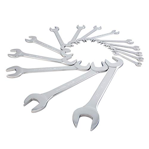 Sunex 9914, SAE Angled Head Wrench Set, 14Piece, 3/8" To 1-1/4", 15 & 60° Angled Ends, Drop Forged Alloy Steel, Dual Markings, Heavy Duty Pouch