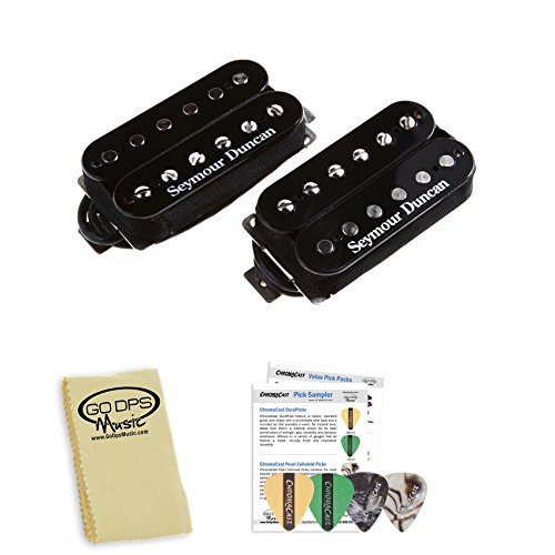 Seymour Duncan Hot Rodded Humbucker SH-4 & SH-2 Electric Guitar Pickup Set - Neck and Bridge positions - Set of Two BLACK (SH-4b and SH-2n) Includes: Polishing Cloth & Pick Sampler