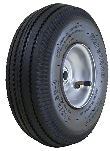 Marathon 4.10/3.50-4" Pneumatic (Air Filled) Hand Truck / All Purpose Utility Tire on Wheel, 2.25" Offset Hub, 5/8" Bearings