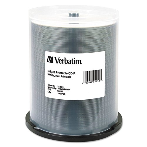 Verbatim CD-R 700MB 52X White Inkjet Hub Printable Recordable Media Disc - 100pk Spindle