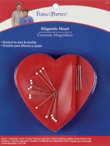 Fons & Porter 7711 Magnetic Heart Caddy with 10 Glasshead Pins & 5 Quilting Needles
