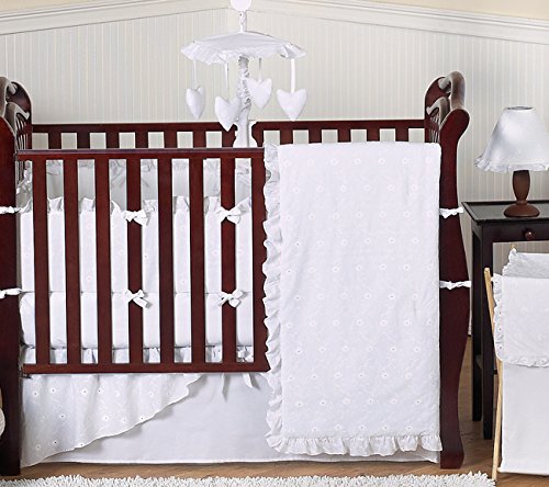 Sweet Jojo Designs 9-Piece Designer Solid All White Eyelet Baby Girl Bedding Crib Set