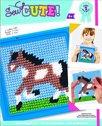 Colorbok Q2342A Horse Learn to Stitch Needlepoint Kit, 6-Inch by 6-Inch, Blue Frame